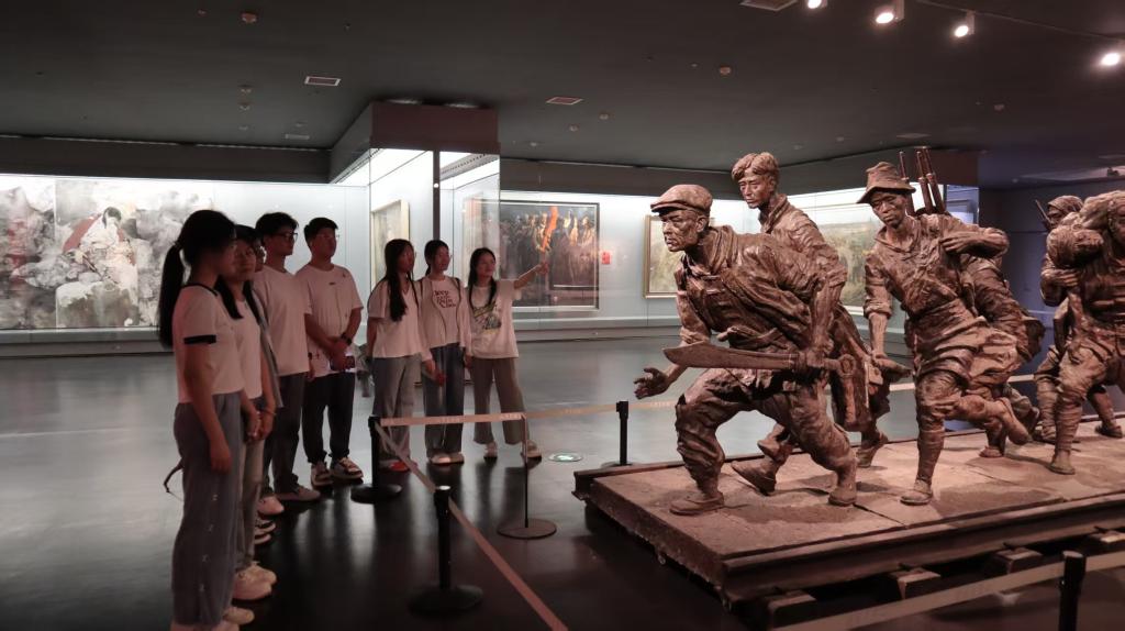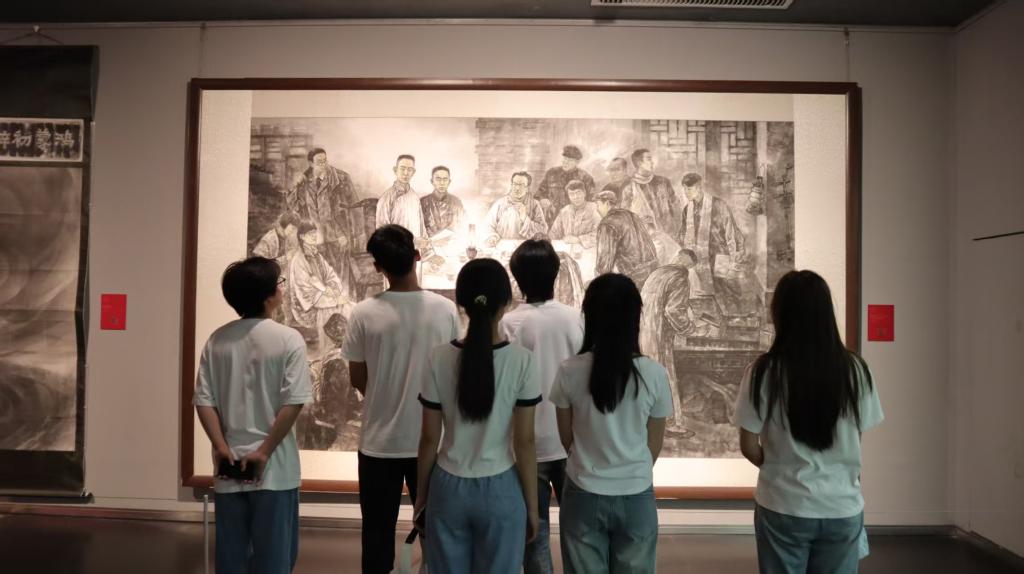 “画述百年”主题展厅内,一幅幅镌刻历史印记的艺术珍品陈列有序,以视觉化的叙事方式全面展现中国共产党自成立以来各个历史时期的壮阔征程与辉煌成就。同学们怀着崇敬之心,驻足凝视每一件艺术作品,探寻作品背后蕴含的精神内核,深刻体悟革命先辈们无畏牺牲、破浪前行的伟大气魄,在红色文化熏陶中坚定理想信念,汲取奋进力量。