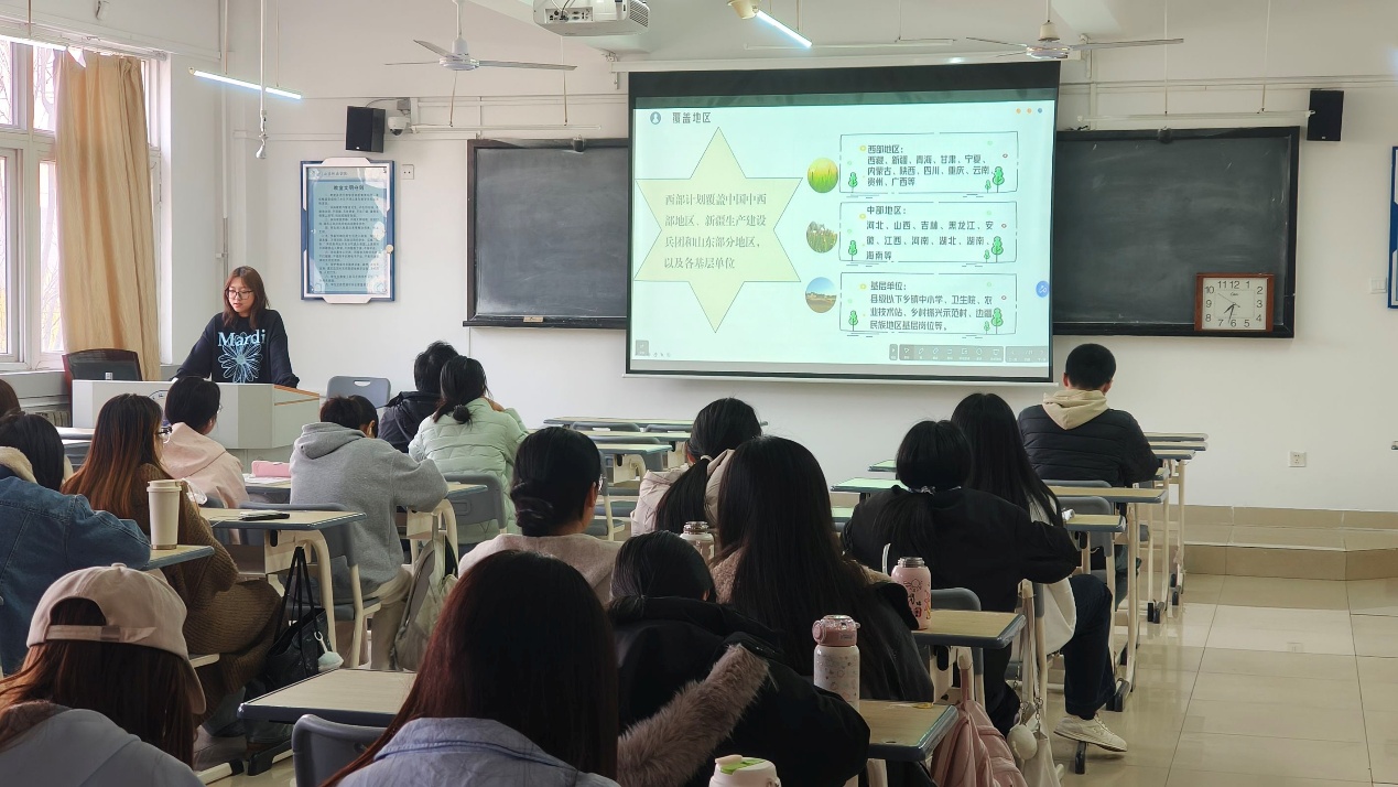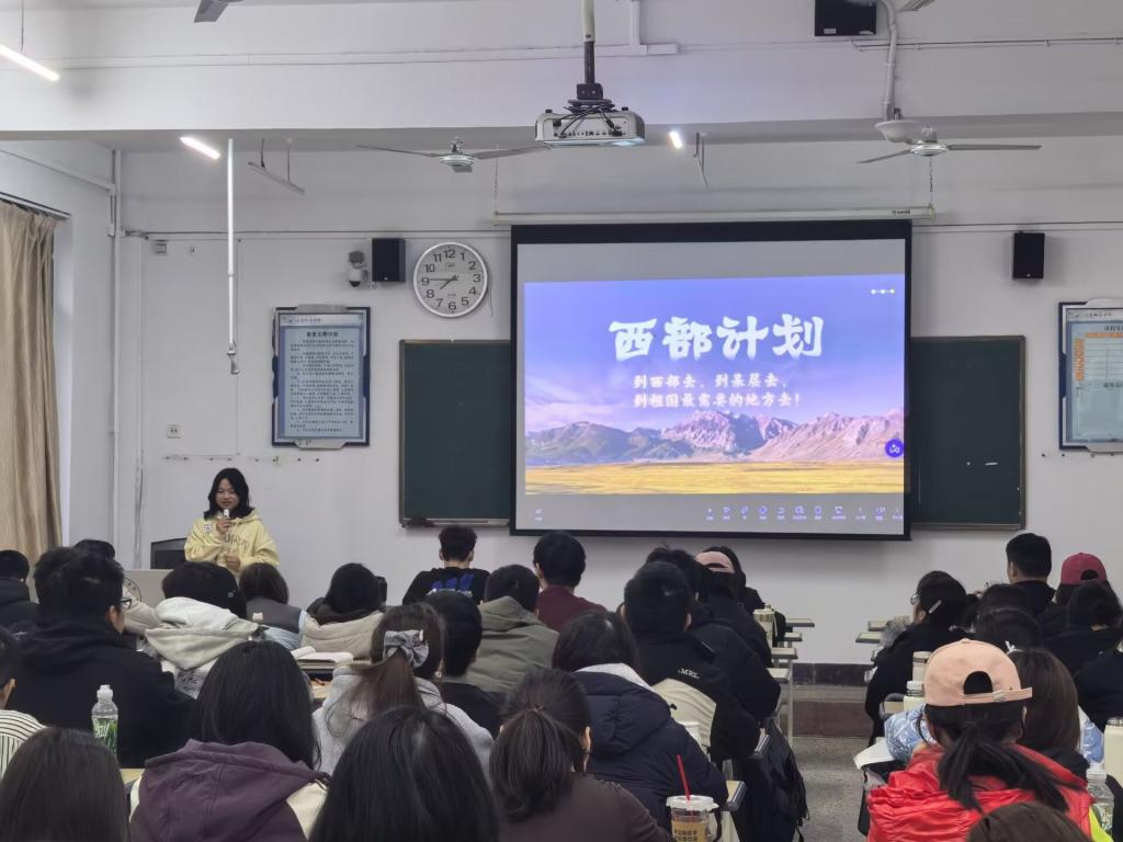 此次西部计划宣传推广活动以走班宣讲的形式实现全覆盖,帮助同学们近距离了解相关政策。宣讲人员围绕项目概况、报考条件展开细致讲解,结合优秀西部计划志愿者典型案例,生动阐释了西部计划的价值与意义。随后,针对同学们关注度高的政策优惠,全面解读了升学就业福利、生活支持保障、人才发展政策等内容,清晰呈现项目完整保障体系。宣讲尾声设置互动提问环节,现场交流氛围热烈,同学们纷纷表达了投身西部、助力乡村振兴的强烈参与意向,彰显了新时代青年的责任与担当。