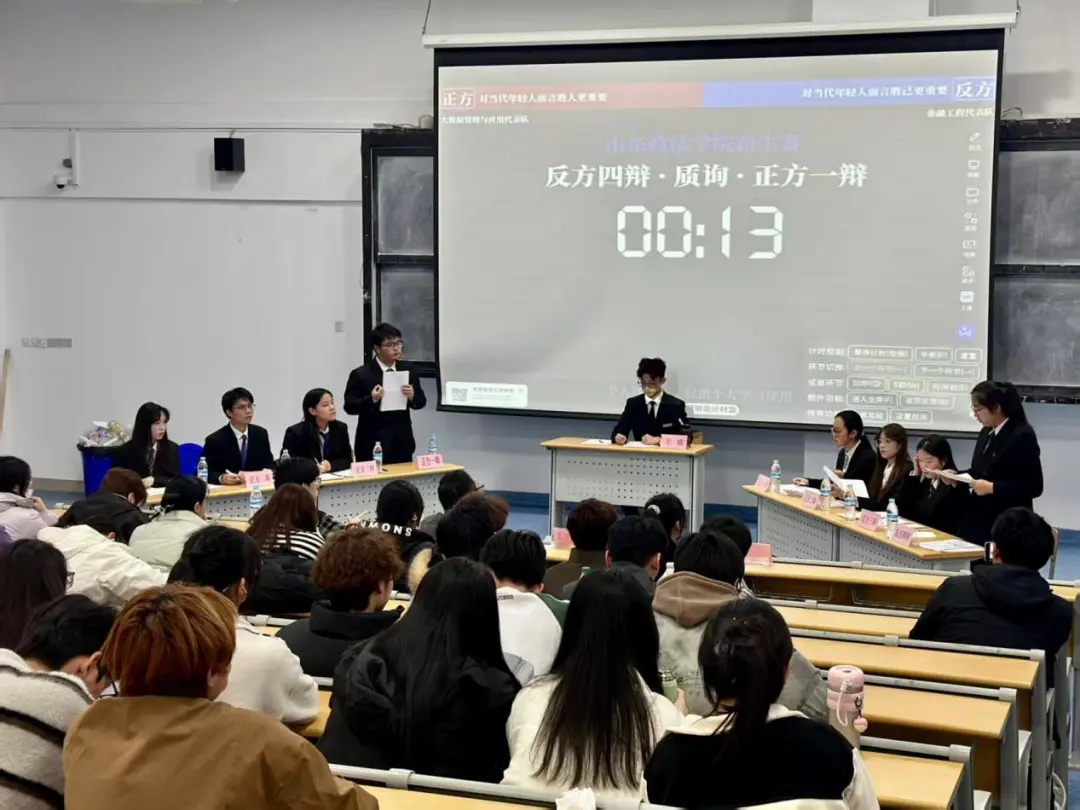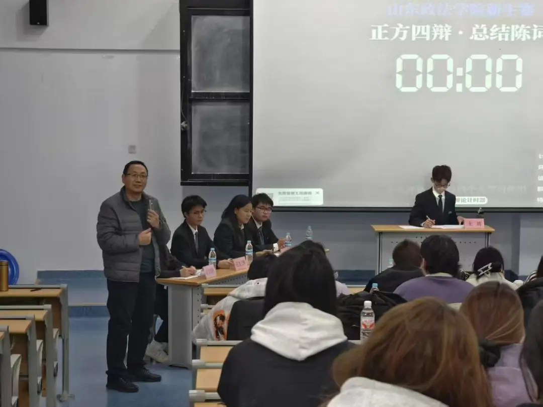2025年11月19日晚,山东政法学院商学院2025年“新生杯”班级辩论赛总决赛在致远楼阶梯教室圆满落幕。本次辩论赛以“对当代年轻人而言,胜人还是胜己更重要”为辩题,吸引了众多师生的关注与参与。经过初赛、复赛、半决赛的激烈角逐,其中两支队伍从13支队伍中脱颖而出,晋级本次决赛。商学院党委副书记苑锦锋老师和高年级学长学姐担任评委。