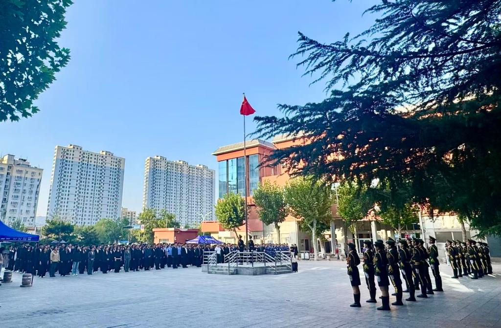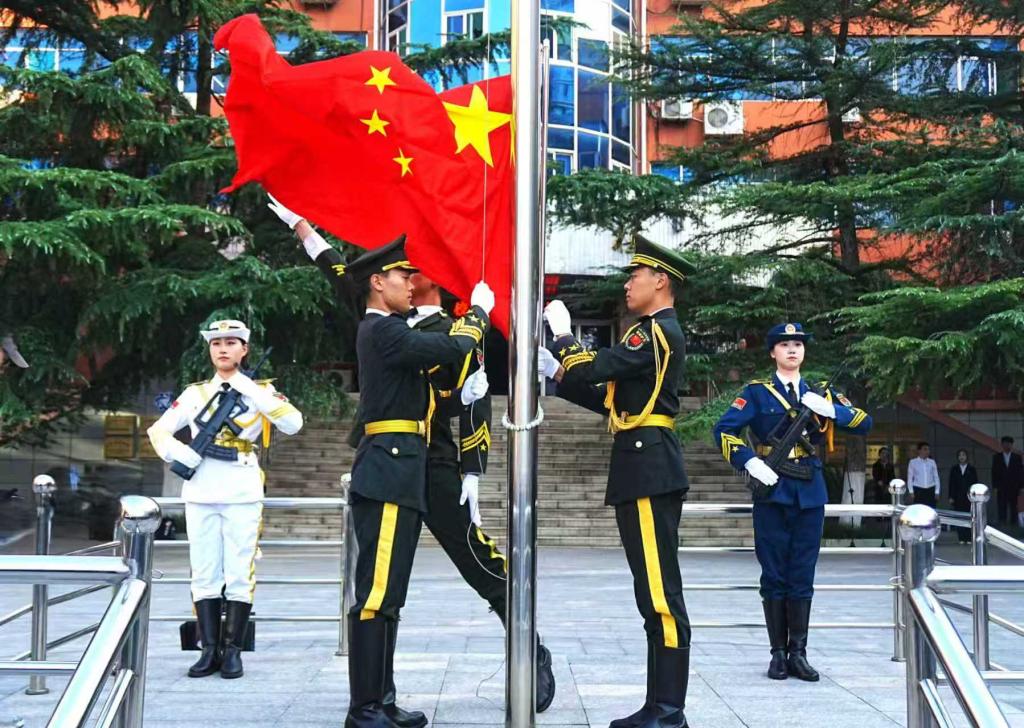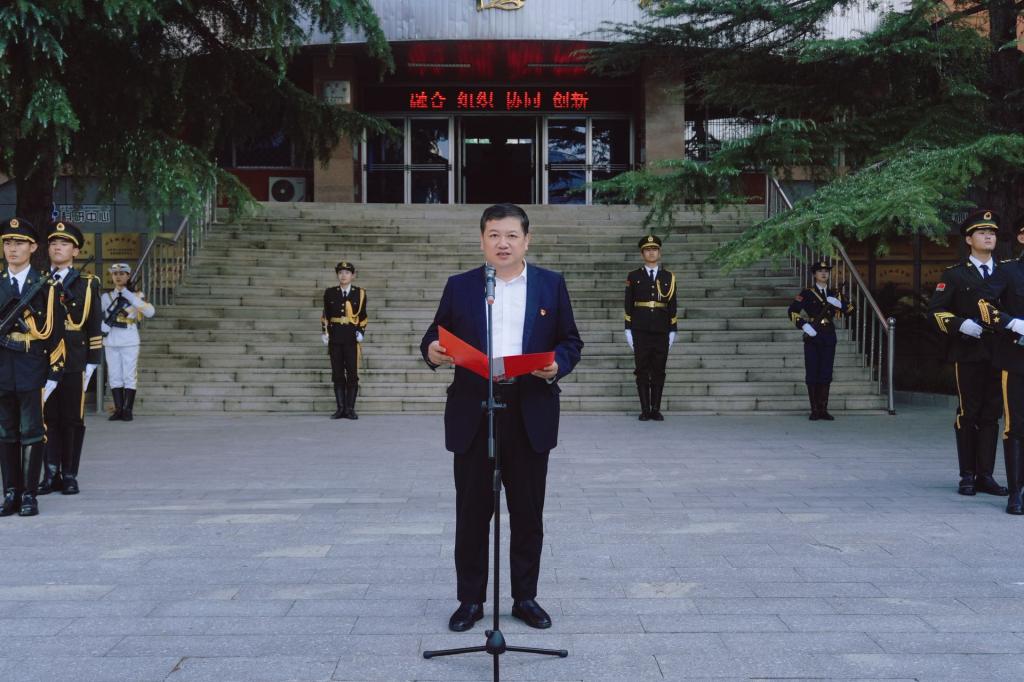 9月30日,学校隆重举行“青春许国 共庆华诞”庆祝中华人民共和国成立76周年升旗仪式。学校党委委员、副院长蒋海升,学生工作处处长安军、校团委书记贾俊涛,各二级学院党委副书记、团委负责人以及学生代表200余人参加仪式,共同见证这一庄严时刻。