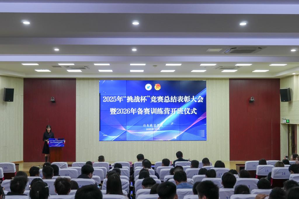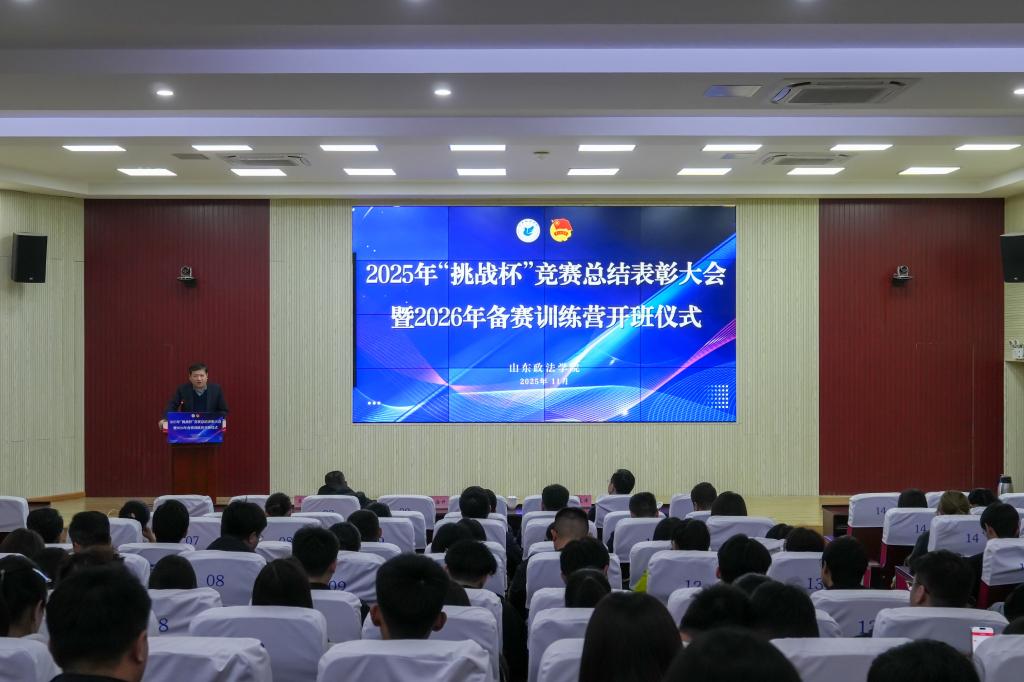 为激发青年学子科技创新热情,营造浓厚的学科竞赛氛围,11月12日下午,由校团委主办的山东政法学院2025年“挑战杯”竞赛总结表彰大会暨2026年备赛训练营开班仪式在知行楼报告厅举行。学校党委委员、副院长蒋海升出席活动并讲话,山东省人大代表、团中央特聘中国青年创业导师王振华教授受邀作专题辅导。校团委书记贾俊涛出席活动,各二级学院党委副书记、分管科研副院长、全体辅导员以及师生代表共260余人参加活动。
