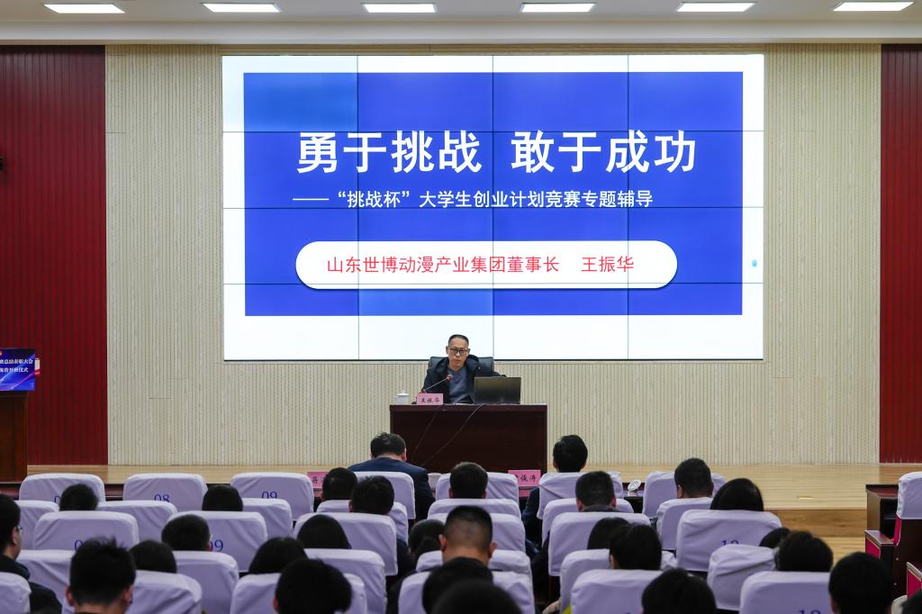 随后,王振华教授为在场师生作2026年“挑战杯”创业计划竞赛(“小挑”)专题辅导。他围绕“小挑”竞赛的市场导向与实战特点,结合我校学科优势,从赛事政策解读、赛道设置、评审标准、项目孵化流程等方面进行了系统讲解,为师生备战明年赛事提供了专业指导与方向引领。