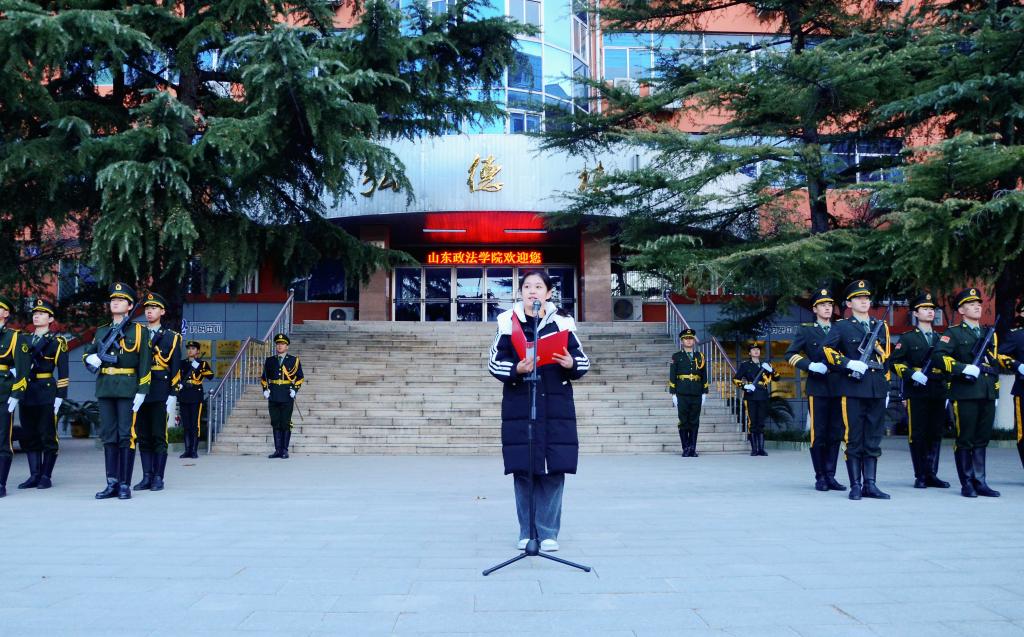 为学习贯彻习近平法治思想,引导青年学生深入理解宪法精神、厚植家国情怀、勇担时代使命,12月4日,山东政法学院举行国家宪法日主题升旗仪式。学校党委委员、副院长蒋海升出席仪式。