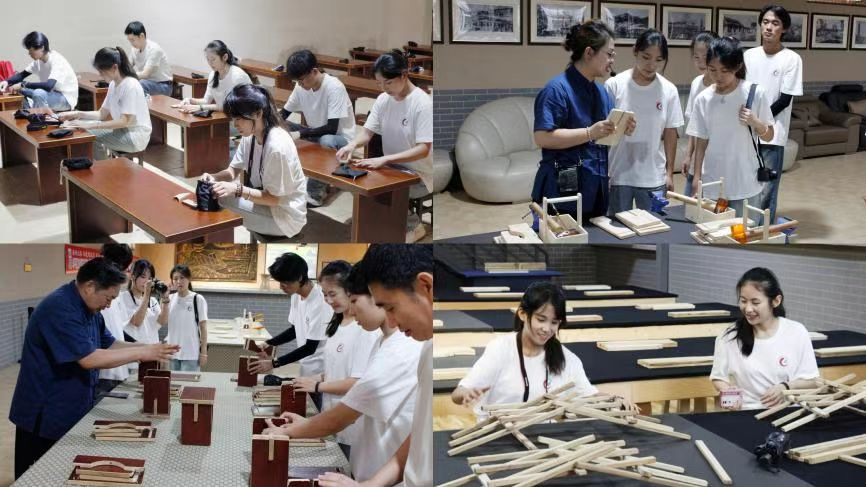 凿木藏天工,薪火照今程。7月2日,实践队走进杜木匠非遗体验馆,探寻传统木匠技艺,深刻领悟鲁班精神和工匠精神的内涵。队员们通过专业讲解、视频展播及沉浸式体验,近距离观摩榫卯结构拼接技艺,亲手参与简单木作工具的操作实践,结合专业所学,将多元模式融入实践环节。深刻体悟“木作有语,一榫一卯皆蕴藏中国文化之美”的含义,领略非遗传承的价值意义,坚定了以实际行动守护传统技艺、让古老智慧在当代焕发新生的决心。