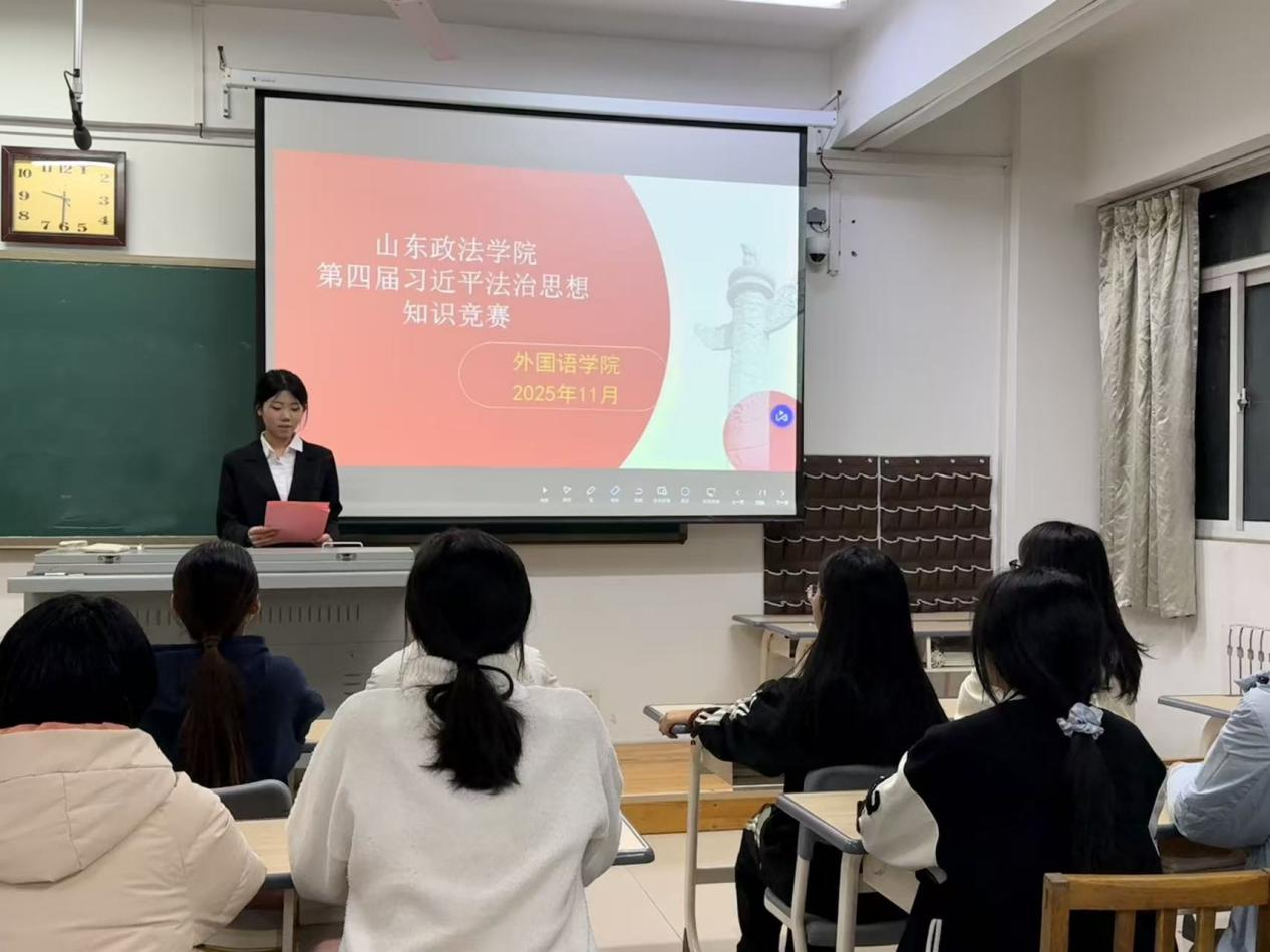 为深入学习贯彻习近平法治思想,提升学生法治素养,配合学校第四届习近平法治思想知识竞赛的开展,山东政法学院外国语学院于2025年11月23日举办了院级初赛,全院在校学生积极参与,掀起了学习法治知识的热潮。