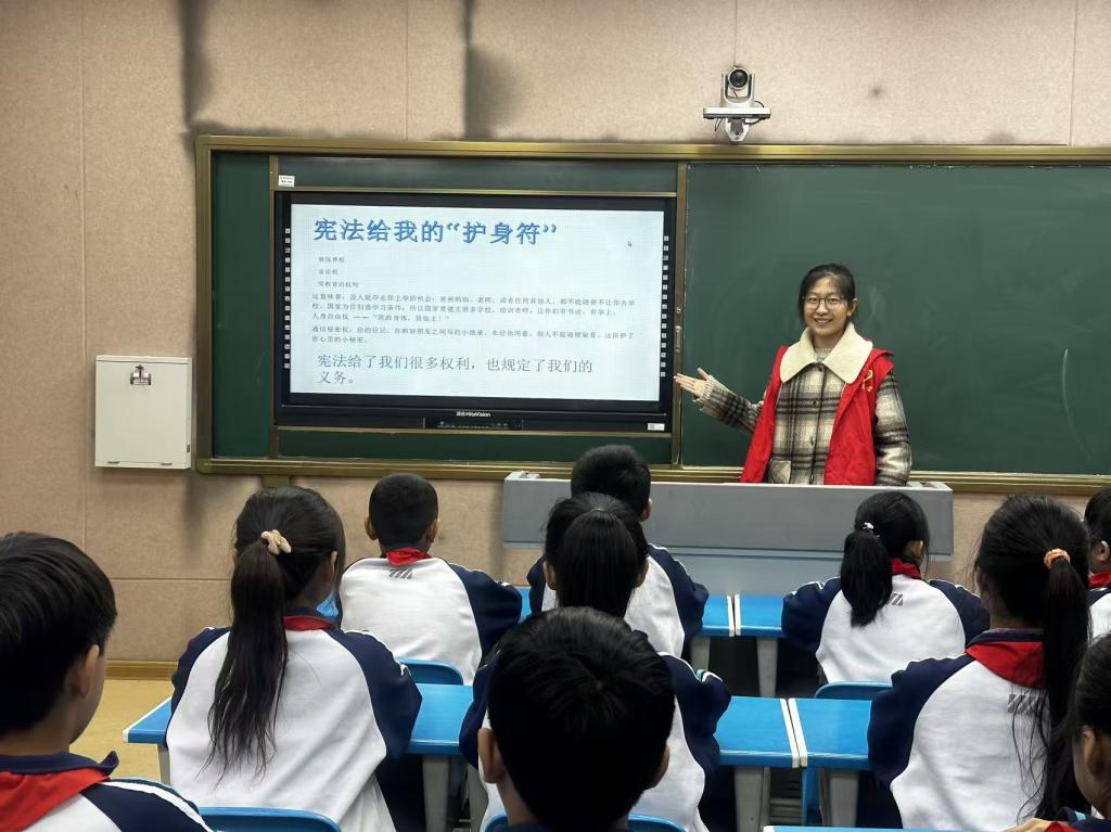 为深入学习贯彻习近平法治思想,让宪法精神在青少年心中落地生根,持续擦亮“法育青苗”特色品牌,11月27日至12月2日,经济贸易法学院组织50余名大学生法治辅导员,走进枫景小学、大明湖小学、大庄小学、杏元小学和雅居园小学等五所小学,面向17个班级开展宪法宣传教育活动,覆盖小学生600余名。