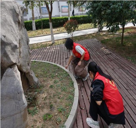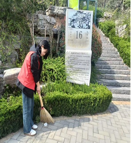 随后,志愿者们赴茂岭山战场遗址开展红色主题劳动实践。大家躬身清理步道白色垃圾、枯枝杂物,细致养护周边绿化带,以实际行动守护红色教育阵地。劳动间隙,学子们重温茂岭山战役革命历史,感悟先辈奋斗精神与奉献初心,实现了红色教育与劳动教育的深度融合,让雷锋精神在红色土地上熠熠生辉。