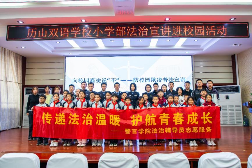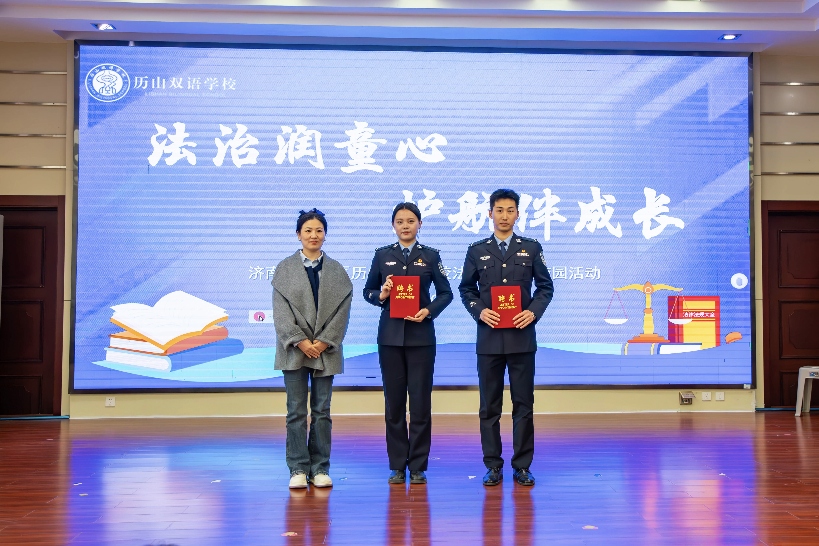 4月1日下午,警官学院“星光蓝”法治宣讲团赴济南市历下区历山双语学校开展普法教育活动。历山双语学校正式向宣讲团成员颁发“大学生法治辅导员”聘书,标志着校地协同法治育人机制迈入常态化、专业化新阶段。